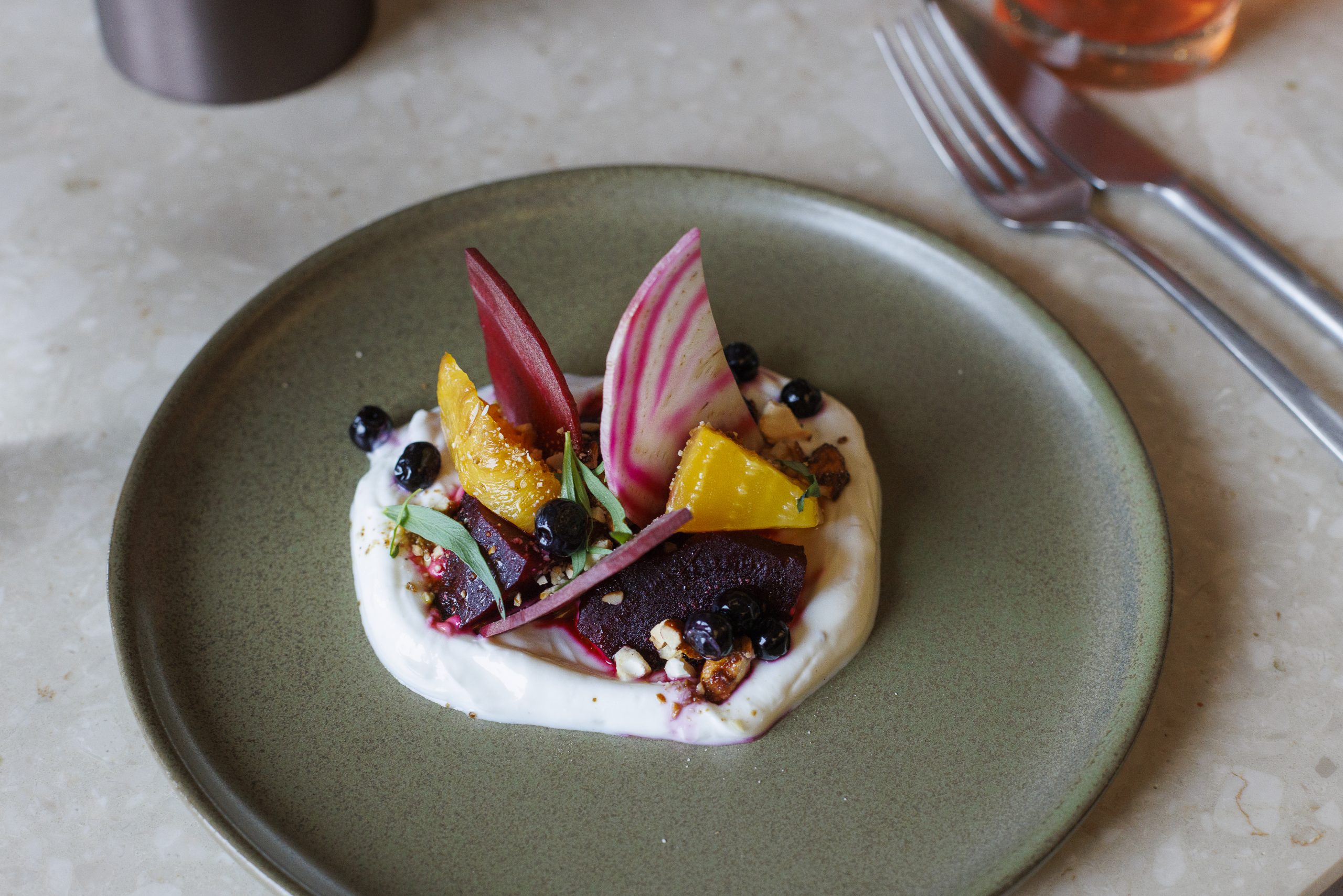 Just to come clean, I’ve avoided beets my whole life — they have a strange texture and colour everything on the plate but when Gísli presents a dish of different types of beets, including yellow ones, plated on smoked skyr with pickled bilberries, spiced nuts and tarragon, I savour every single bite — each exploding with a distinct new flavour.